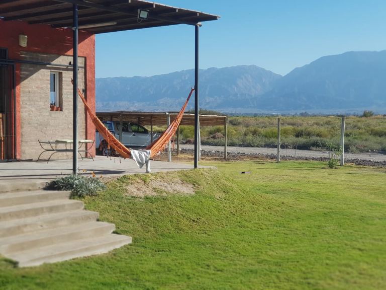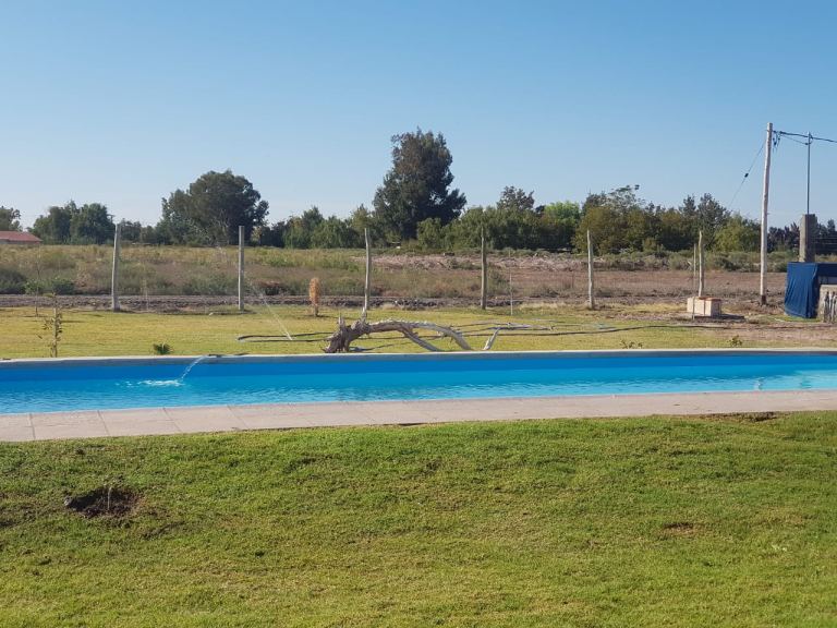 Hermosa casa de fin de semana o permanente, posee pileta (10x4) con bomba y todos sus accesorios, riego por aspersión , parrillero techado, agua de poso, energía trifásica, pesquisado, cochera para 3 vehículos , 2 dormitorios amplios, living comedor, cocina con mesada amplia y ventanales con vista al cerro, baño interior de casa y otro fuera de la misma, galería techada.